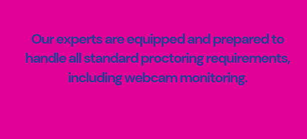 Our experts are equipped and prepared to handle all standard proctoring requirements, including webcam monitoring. The software operates the same way it would for any student. We ensure all protocols are followed to maintain the integrity of the process from the software's perspective.